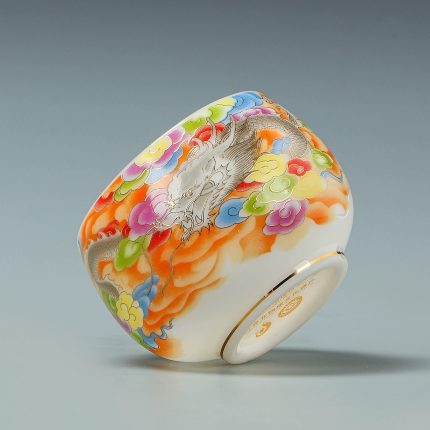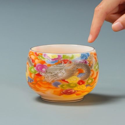 Elevate your tea experience with our Suet Jade White Porcelain Dragon & Phoenix Relief Tea Cup – Simple Design, Portable,