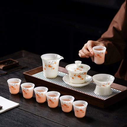 Elevate your tea experience with our Ice Jade Hand-Painted Tea Set Gift Box – Dehua White Porcelain, Premium Corporate Gift,