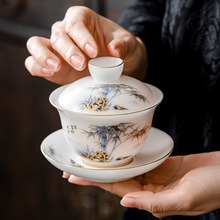 Ice Jade Hand-Painted Tea Set Gift Box – Dehua White Porcelain, Premium Corporate Gift, Luxury Tea Bowl Set