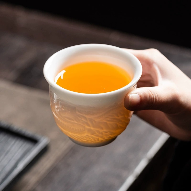 Elevate your tea experience with our Handcrafted Suet Jade Relief Gongfu Master Tea Cup Set – Ceramic Aroma Cup & Tasting Cup for Home Use. Elevate your daily tea ritual with this exquisite Handcrafted Suet Jade Relief Gongfu Master Tea Cup Set. Meticulously crafted by skilled artisans, each piece features intricate relief carvings inspired by the smooth, luminous quality of suet jade. This set includes a master brewing cup, a dedicated aroma cup for scent appreciation, and a tasting cup, providing the complete Gongfu tea experience. Perfect for home use, it transforms ordinary tea time into a sophisticated sensory journey, allowing you to fully appreciate the aroma, flavor, and color of your favorite teas.