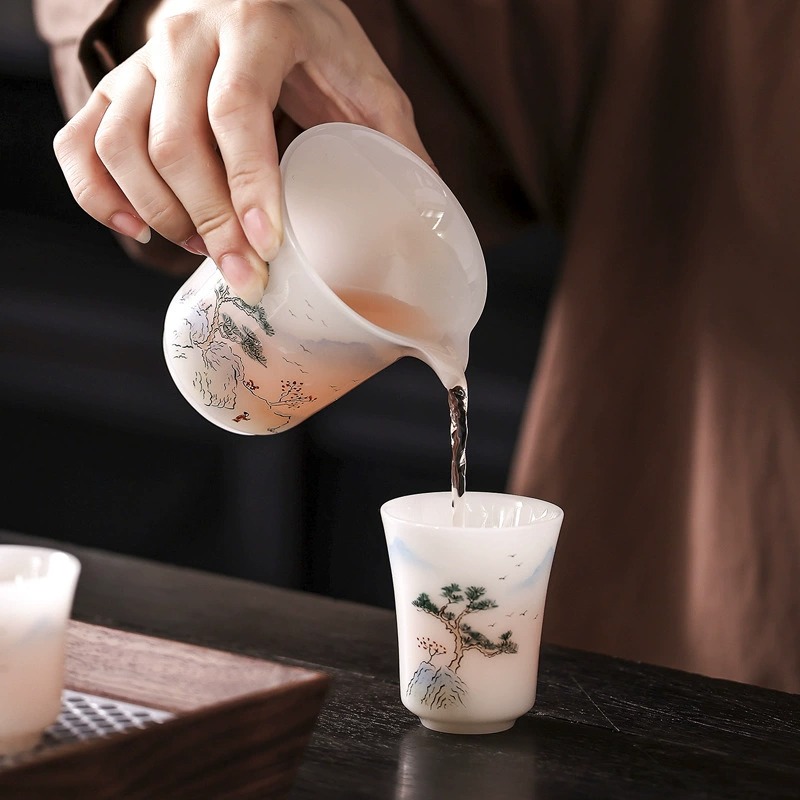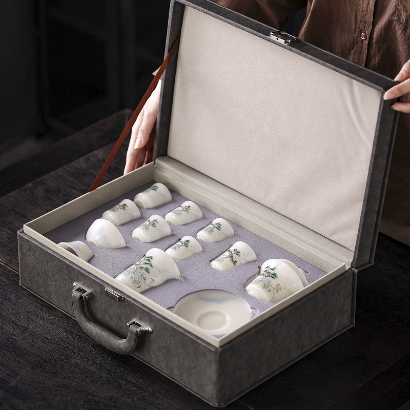 Ice Jade Hand-Painted Tea Set Gift Box – Dehua White Porcelain, Premium Corporate Gift, Luxury Tea Bowl Set